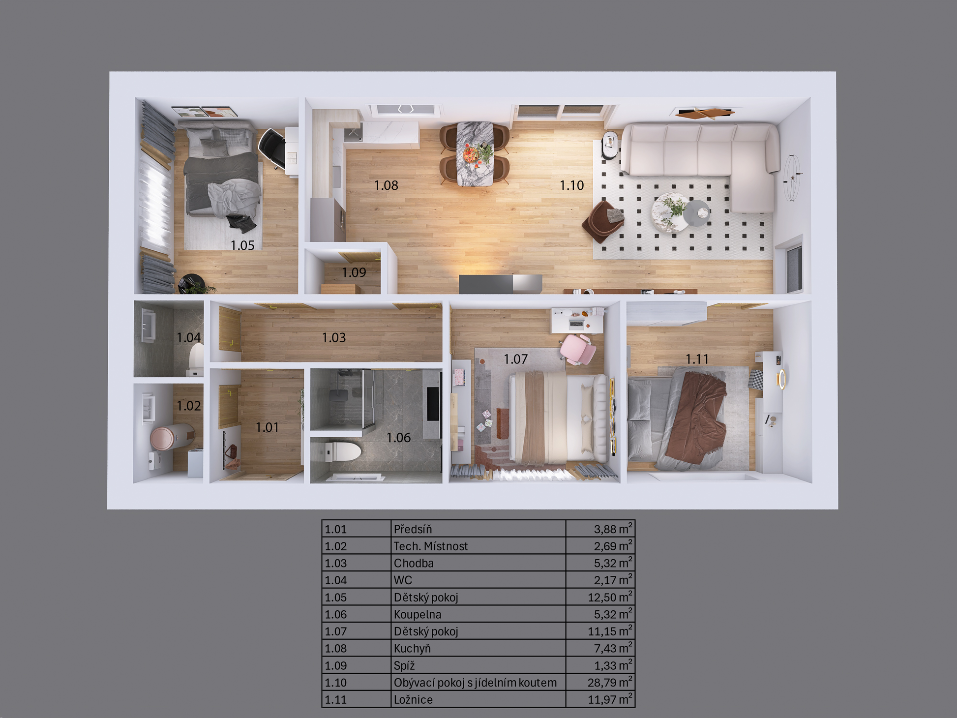 Nabízíme k prodeji moderní přízemní rodinný dům o dispozici 4+kk v klidné rezidenční lokalitě. Dům nabízí dostatek prostoru pro rodinu a je připraven k okamžitému bydlení.