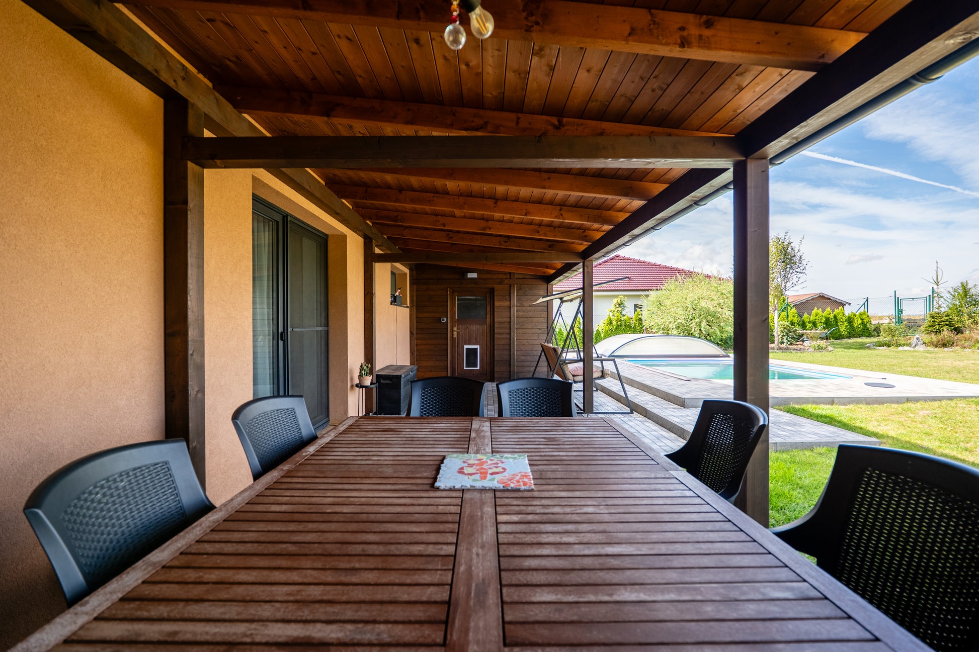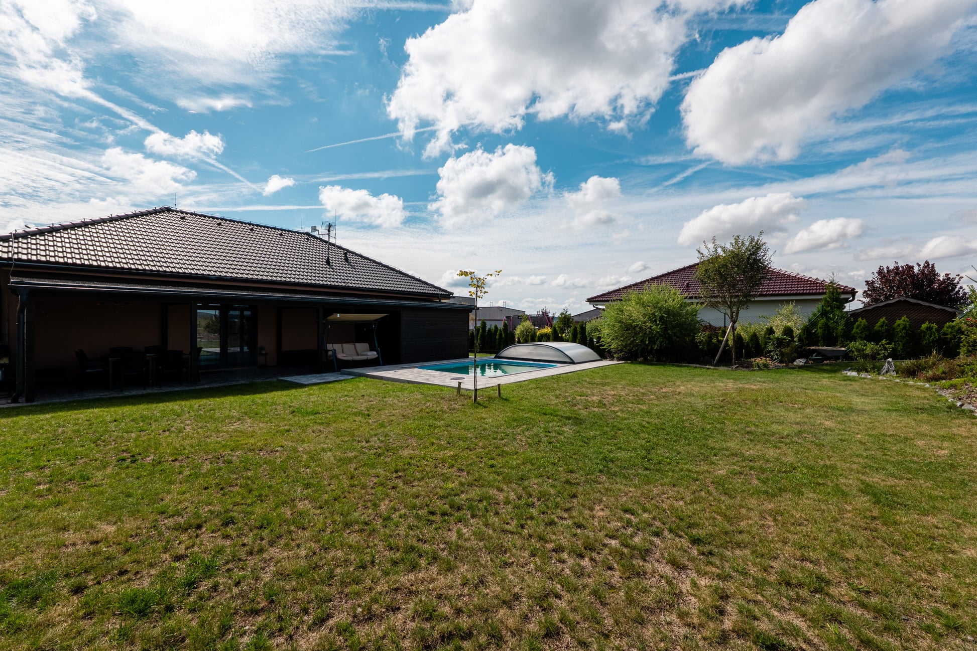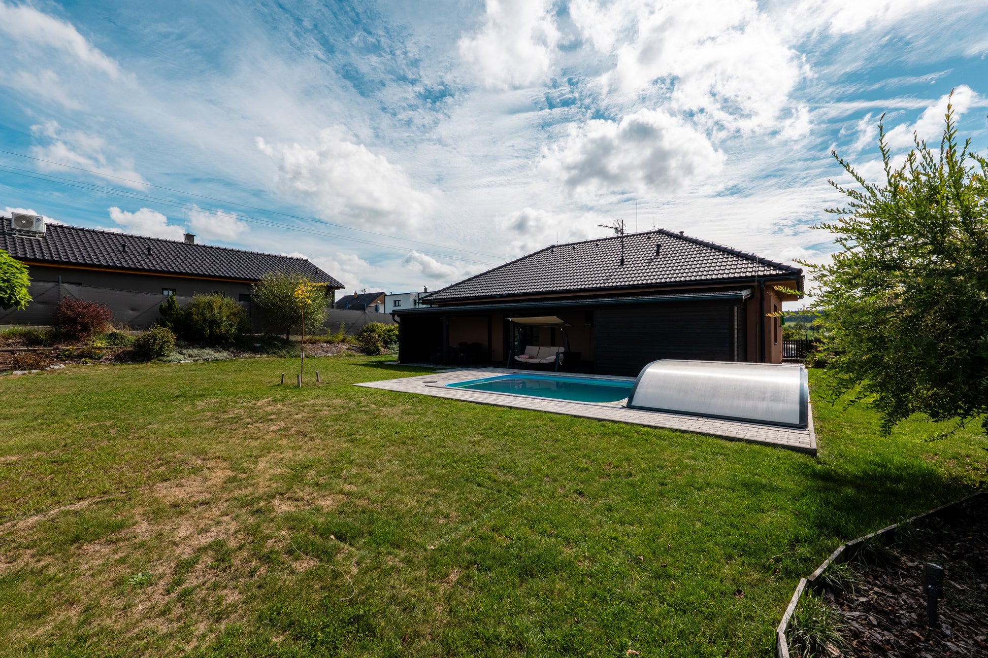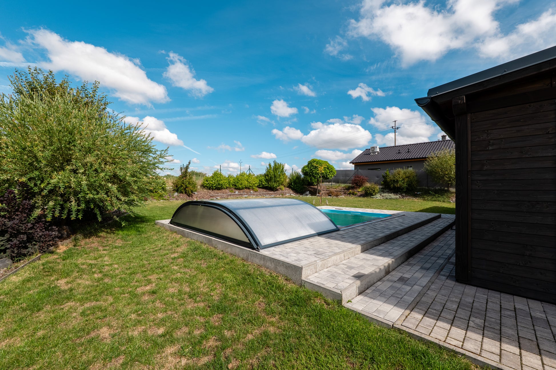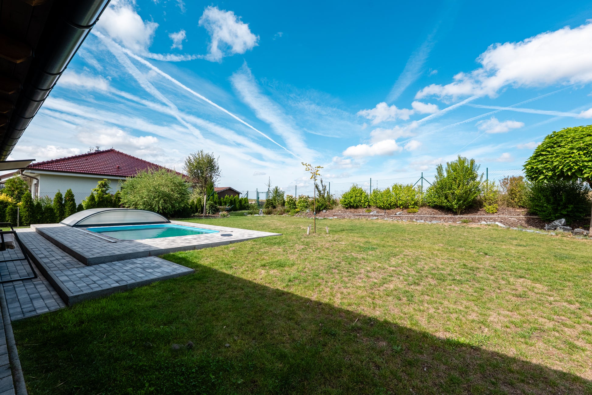Součástí domu je zahrada s terasou a bazénem s protiproudem, který vám poskytne nejen letní osvěžení, ale i možnost aktivního plavání přímo u vás doma. Před domem je zajištěno komfortní parkování.