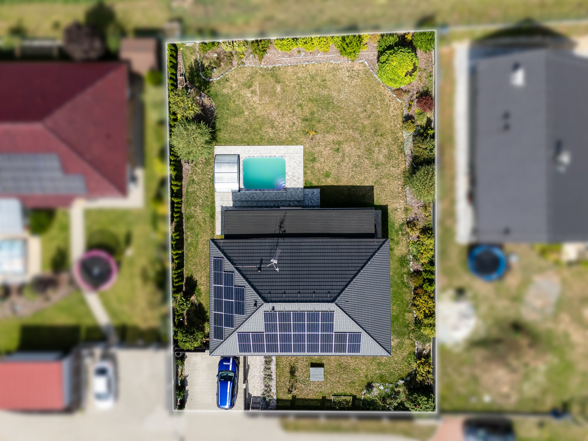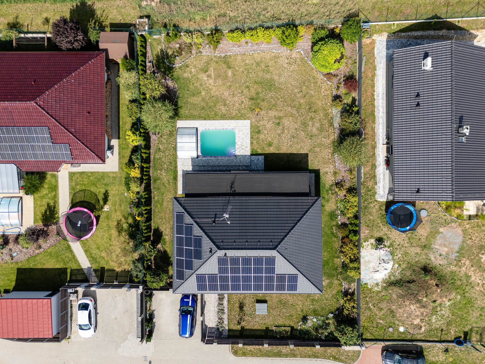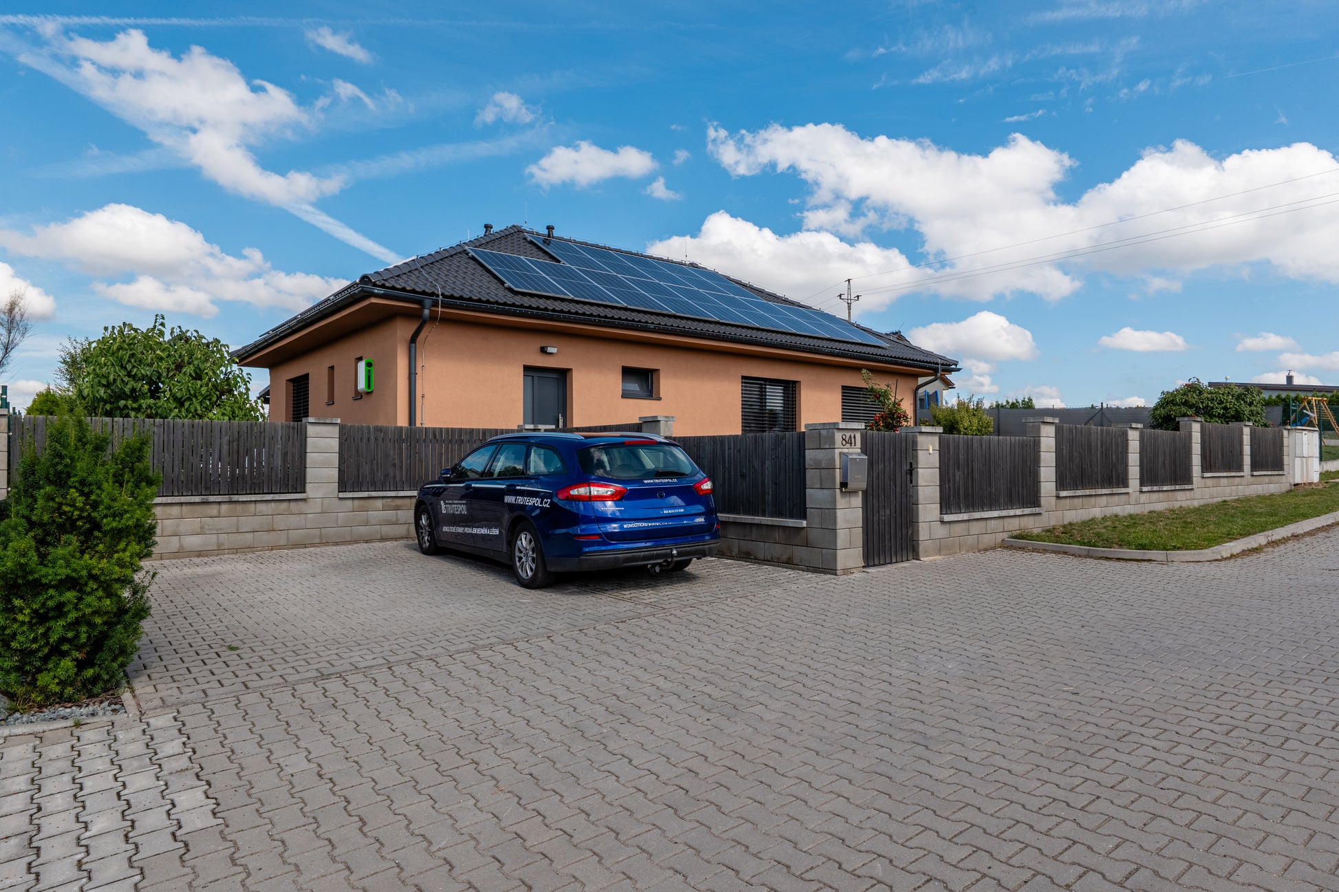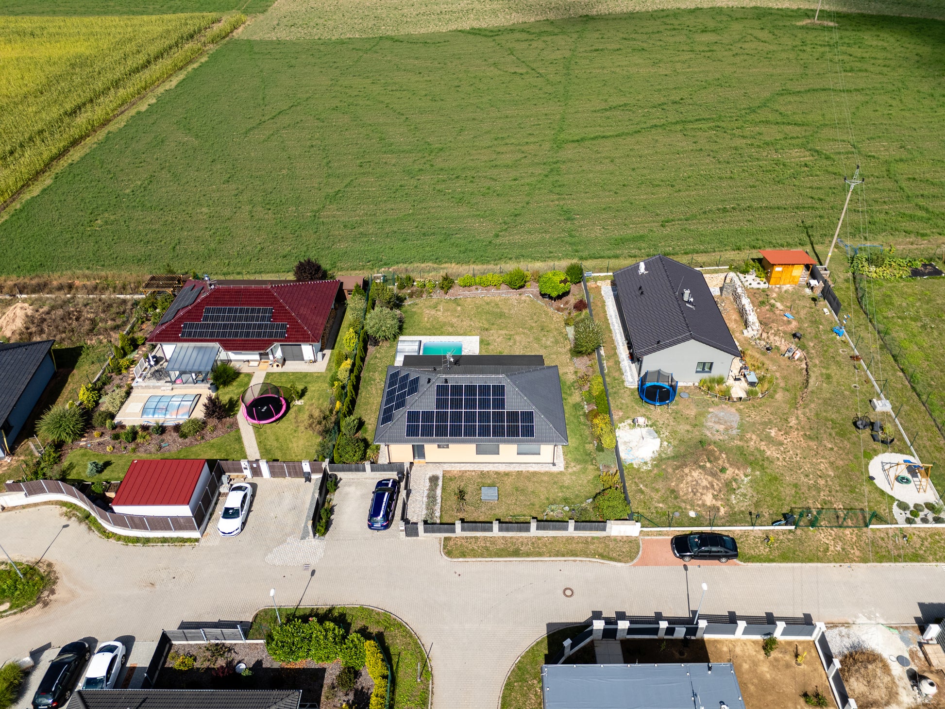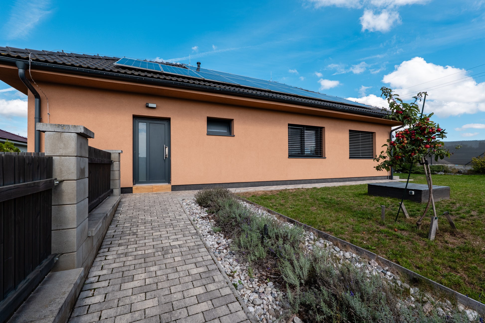 Dům byl navržen s ohledem na úsporný provoz a je vybaven moderními technologiemi, díky kterým se celkové měsíční náklady na energie pohybují přibližně kolem 2 000 Kč – včetně ohřevu vody, vytápění, klimatizace i provozu bazénu.
